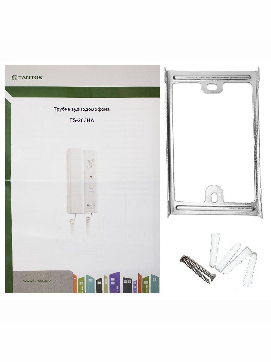 TANTOS TS-203HA - переговорная трубка аудиодомофона. Предназначена для двухпроводного подключения. Совместима с комплектом аудиодомофона и аудиотрубки TS-203Kit, а также вызывными панелями KC-MD10. Кнопка отрывания замка – «сухие контакты» (нормально-разомкнутые). Возможно параллельное подключение до трех трубок в одной системе. Цвет корпуса белый. Питание 220 В.