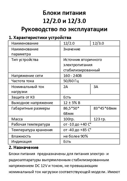 Входное напряжение 12 ± 5% В, 160 - 240В