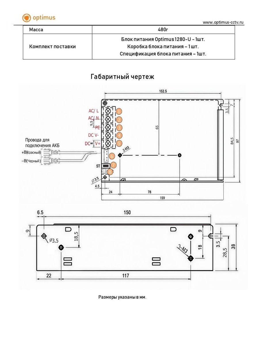 Комплектация Блок питания Optimus 1230-U - 1шт. Коробка блока питания – 1 шт. Спецификация блока питания – 1шт.
