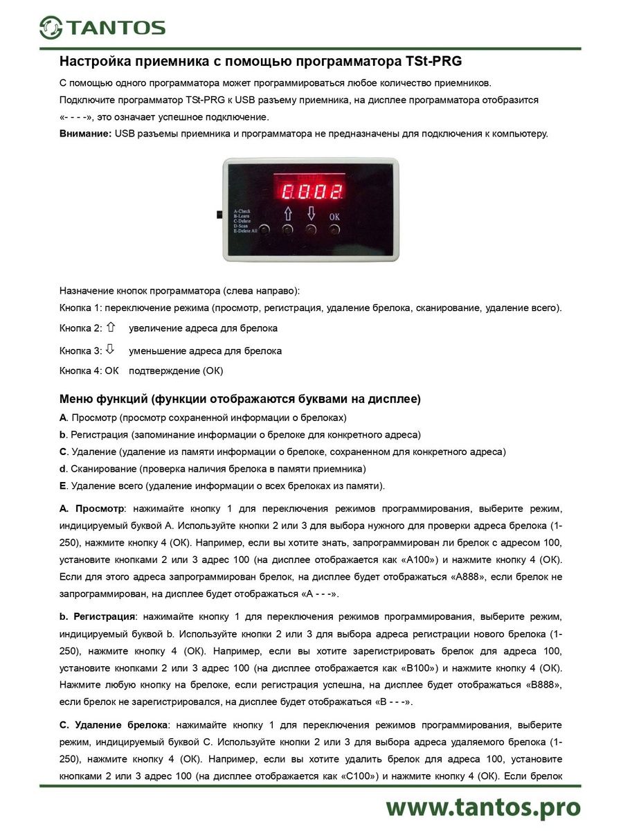 Блок программирования TSt-PRG производства компании Tantos