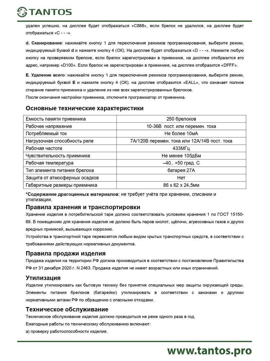 - Защита от самостоятельного несанкционированного копирования брелоков