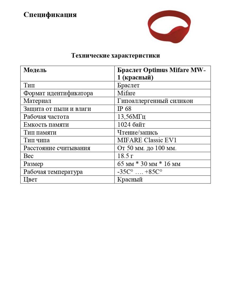 Браслет формата Mifare без застёжки Рабочая частота 13,56 кГц, формат Mifare, размер Ø60*30*16 мм Цвет красный