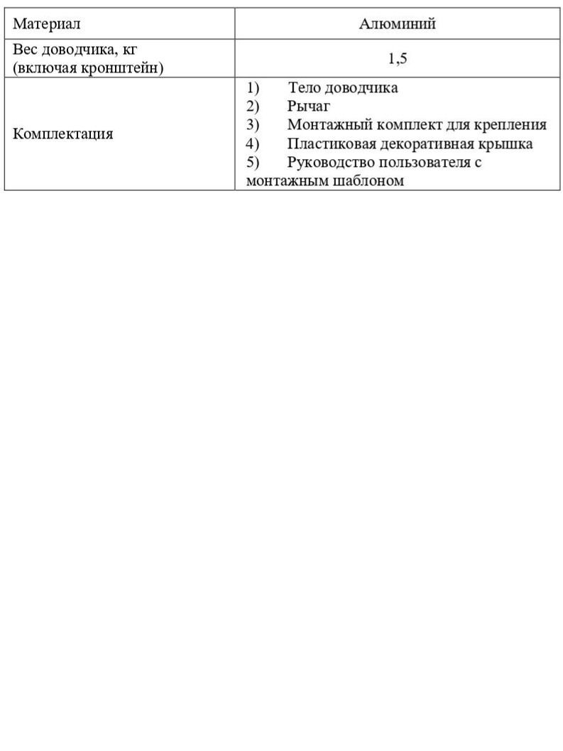 Вес доводчика (включая кронштейн) 1,5