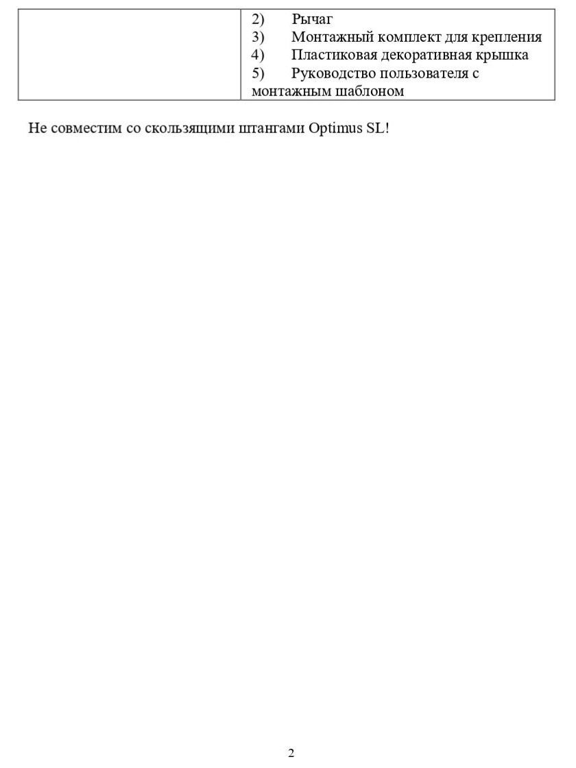 Не совместим со скользящими штангами Optimus SL!