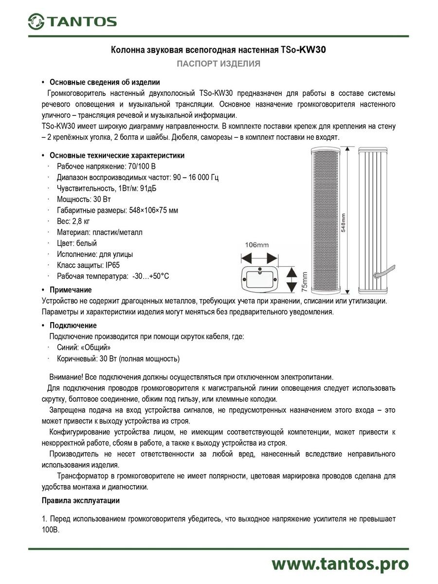 Громкоговоритель TSo-KW30 производства компании Tantos