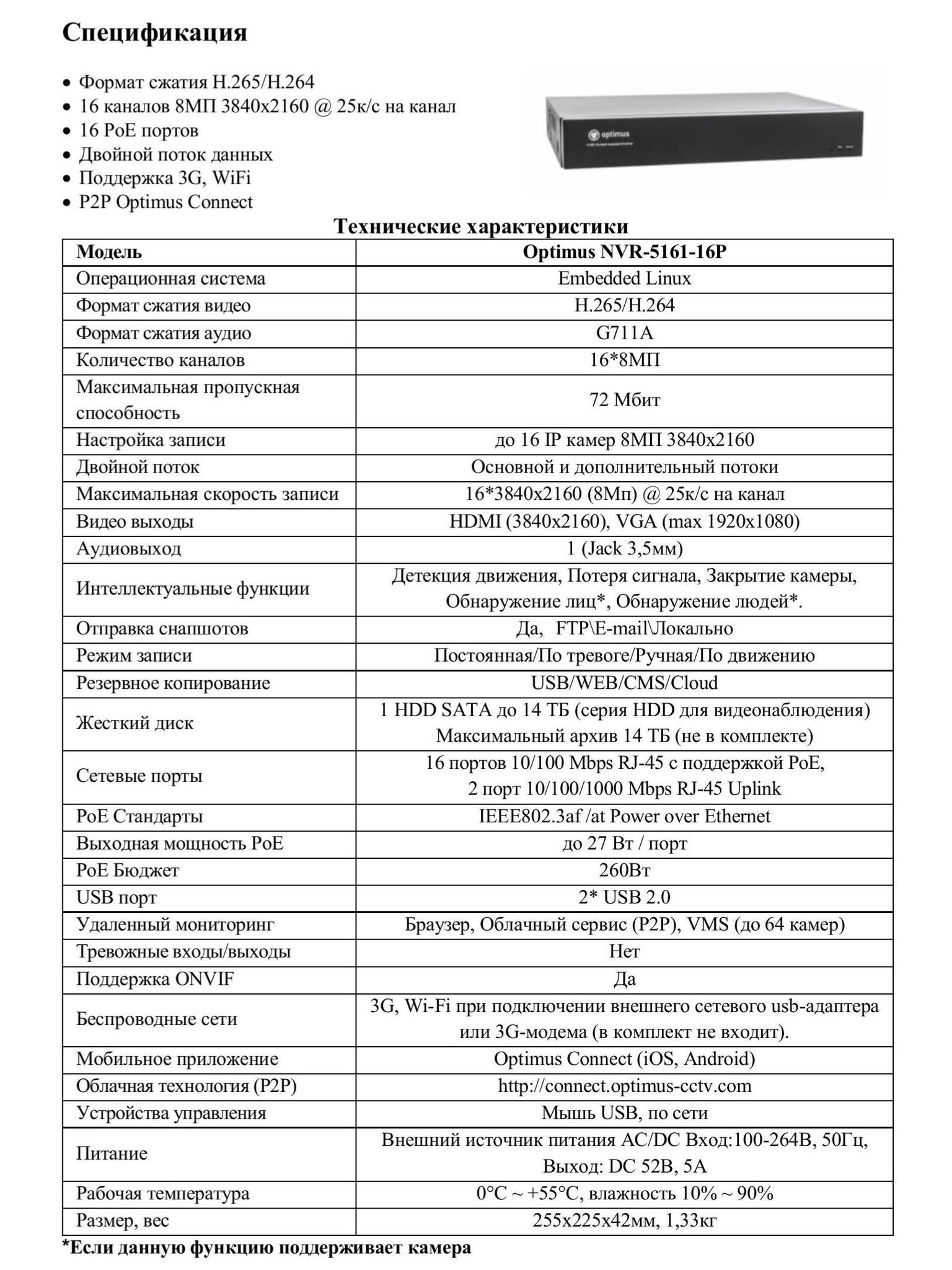Сетевой видеорегистратор Optimus NVR-5161-16P сочетает высокопроизводительный процессор обработки видеоданных и встроенную операционную систему Embedded Linux.
