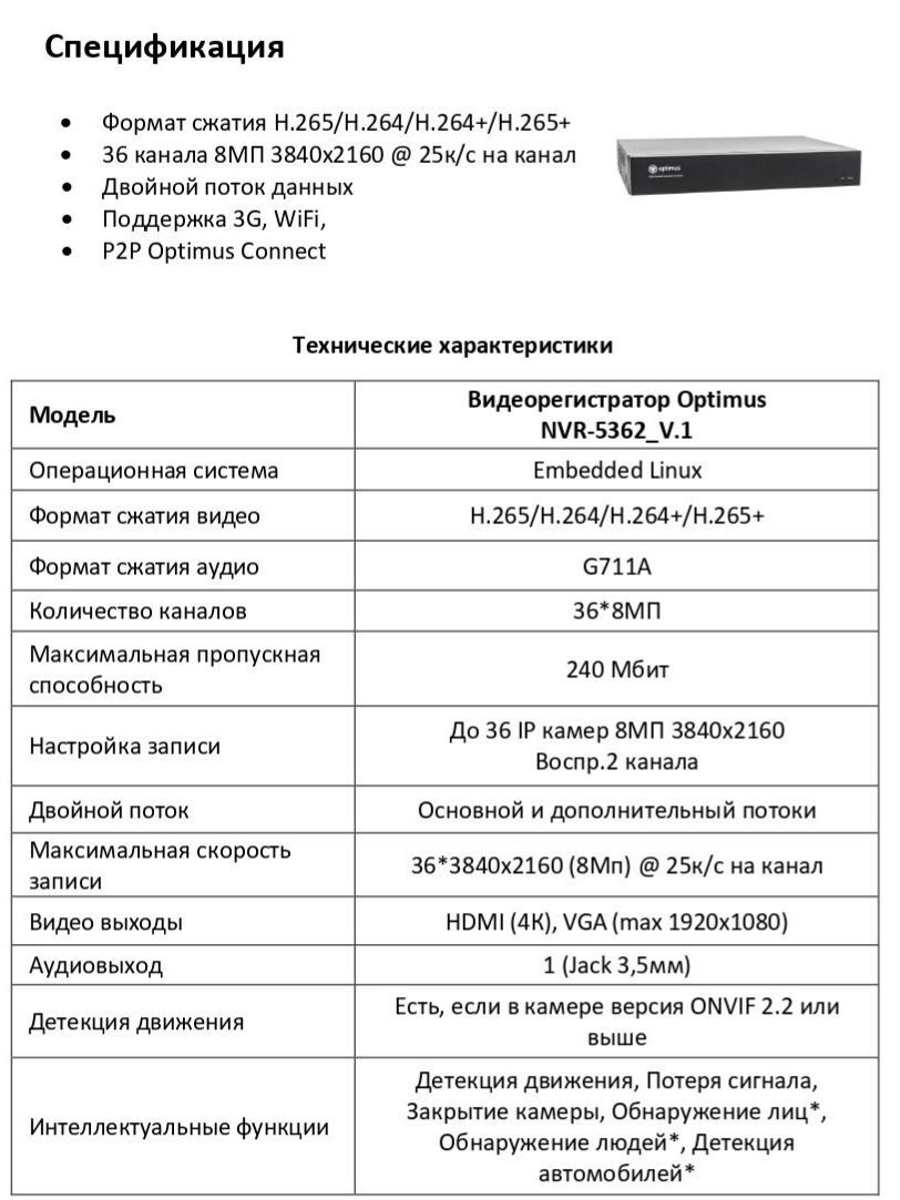 Сетевой видеорегистратор Optimus NVR-5362_V.1 сочетает высокопроизводительный процессор обработки видеоданных и встроенную операционную систему Embedded Linux.