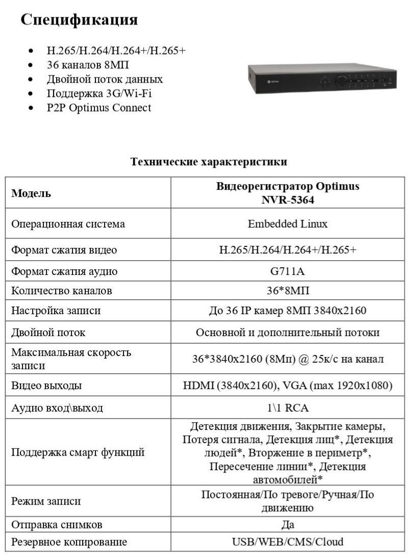 Сетевой видеорегистратор Optimus NVR-5364 сочетает высокопроизводительный процессор обработки видеоданных и встроенную операционную систему Embedded Linux.