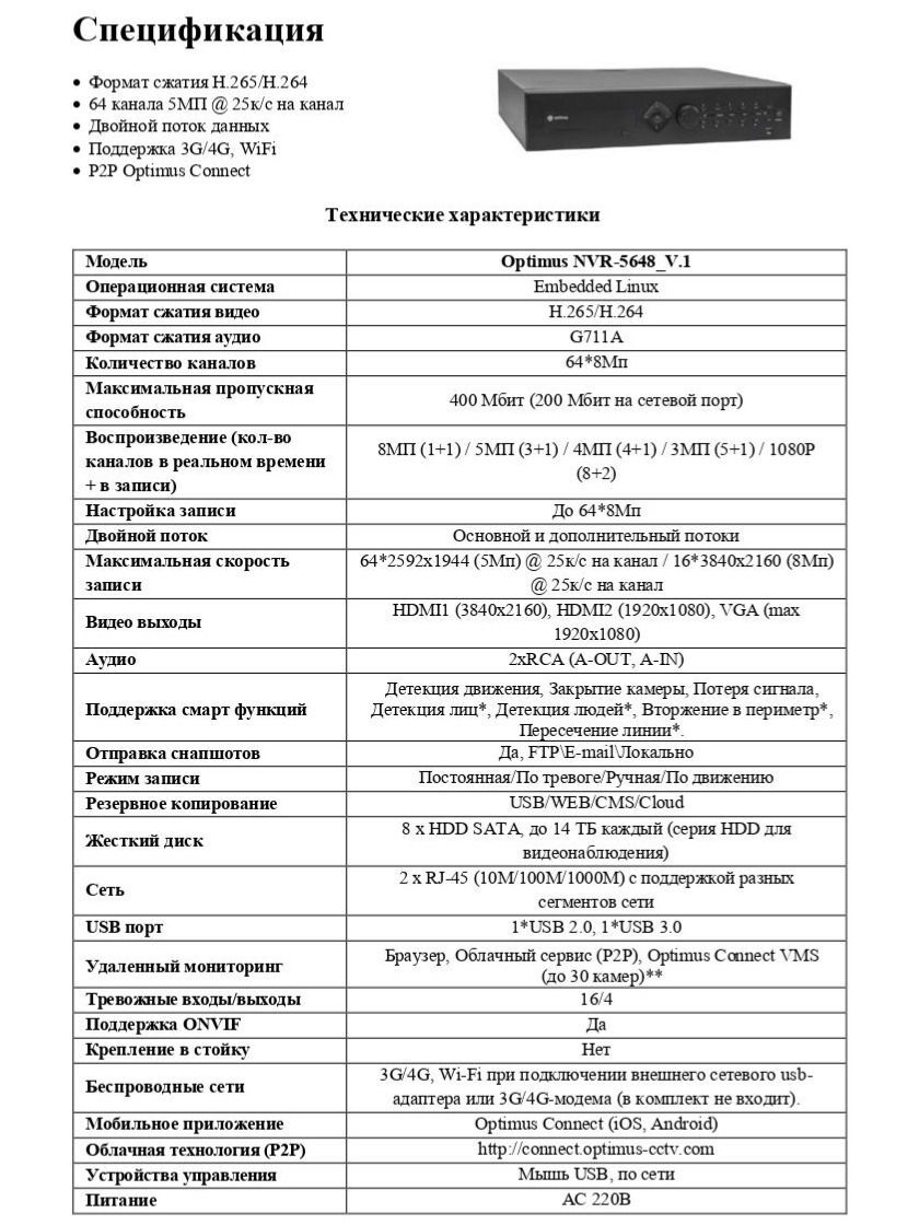Сетевой видеорегистратор OptimusNVR-5648_V.1 сочетает высокопроизводительный процессор обработки видеоданных и встроенную операционную систему Embedded Linux.