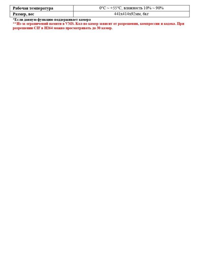 Расшифровка * *Если данную функцию поддерживает камера **Из-за ограничений памяти в VMS. Кол-во камер зависит от разрешения, компрессии и кодека. При разрешении CIF в H264 можно просматривать до 30 камер.