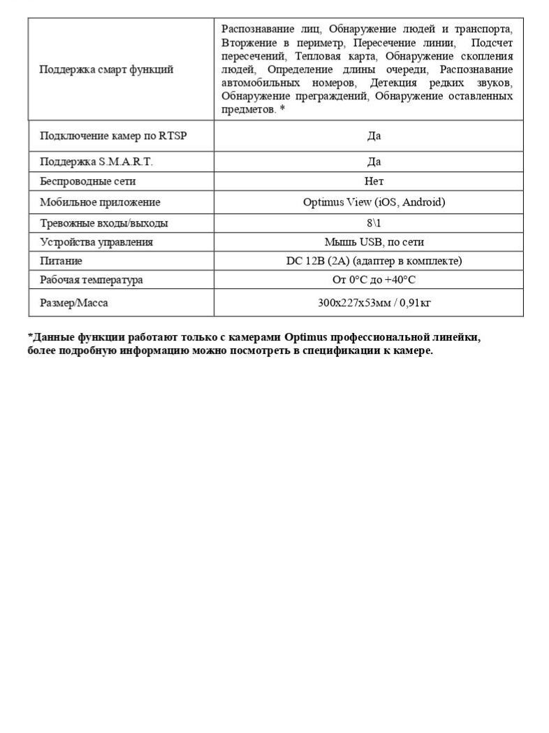 Расшифровка* *Данные функции работают только с камерами Optimus профессиональной линейки, более подробную информацию можно посмотреть в спецификации к камере.