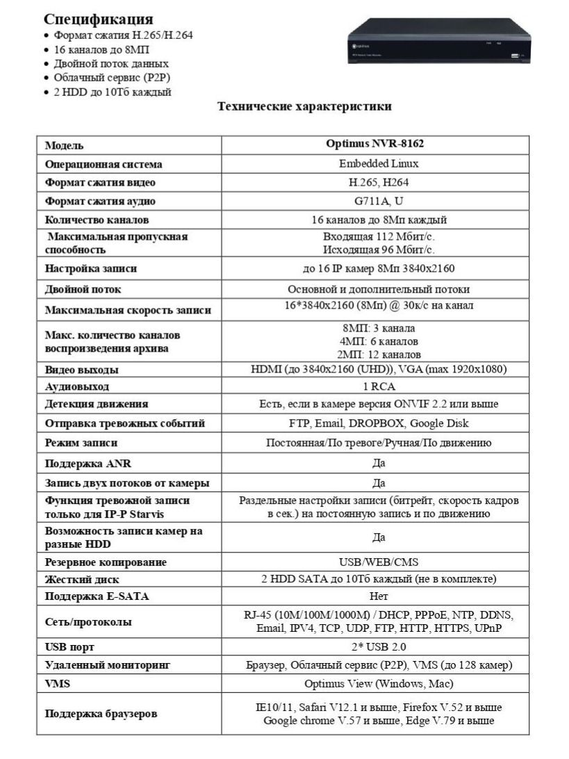 Сетевой видеорегистратор Optimus NVR-8162 сочетает высокопроизводительный процессор обработки видеоданных и встроенную операционную систему Embedded Linux.