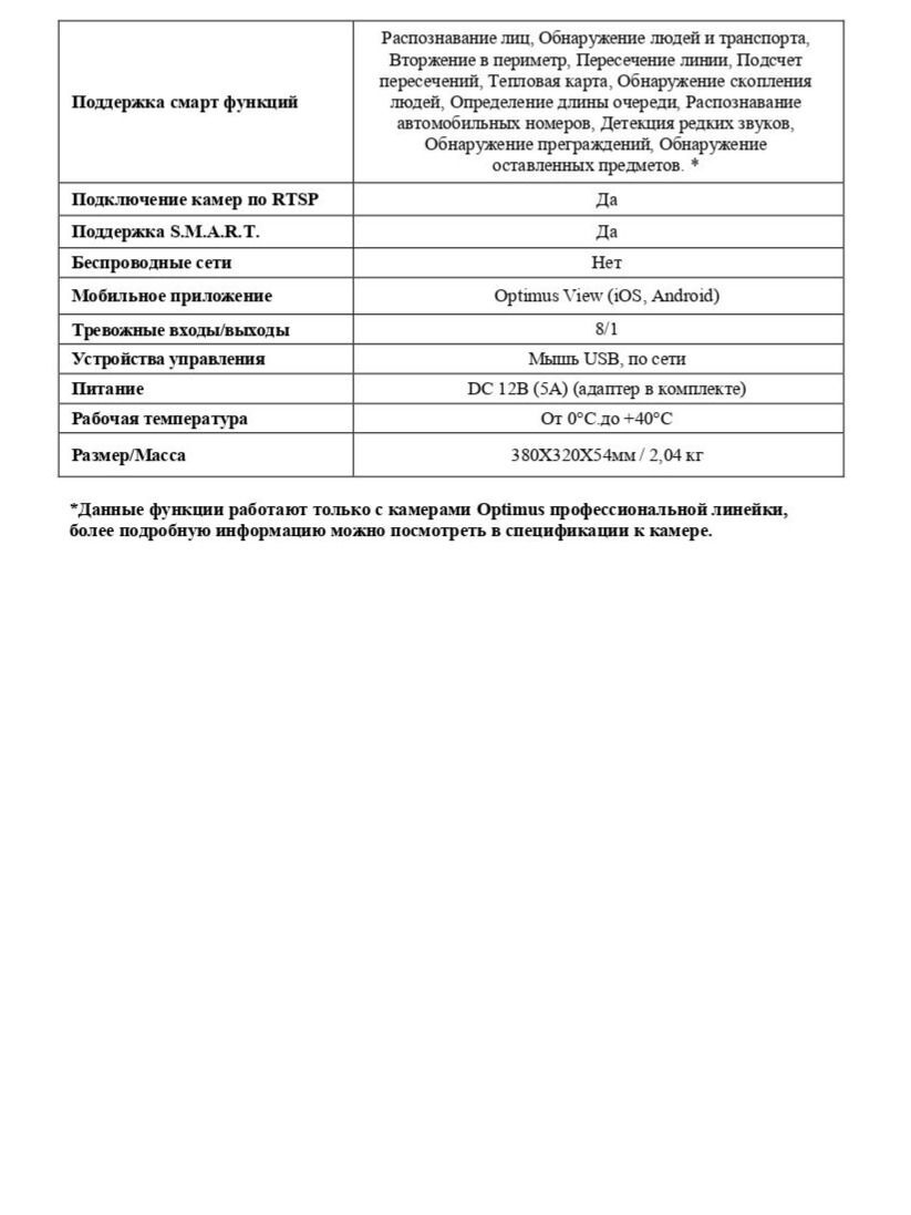 Расшифровка * *Данные функции работают только с камерами Optimus профессиональной линейки, более подробную информацию можно посмотреть в спецификации к камере.