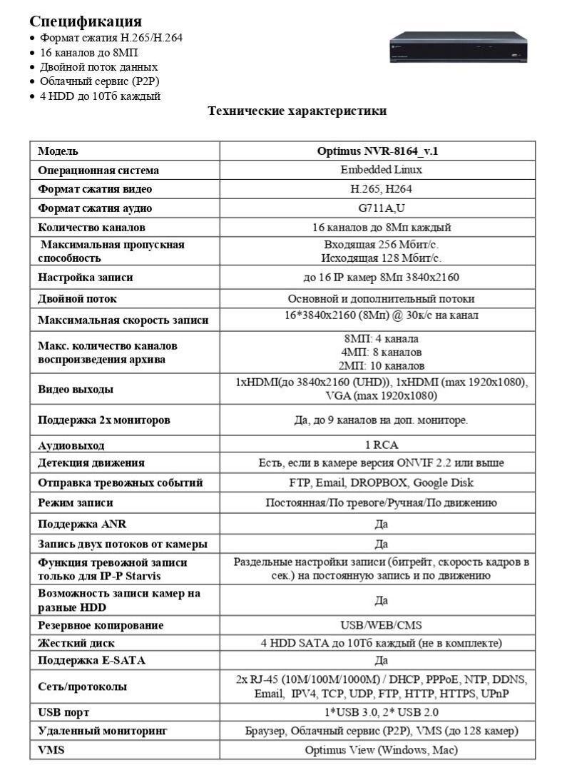 Сетевой видеорегистратор Optimus NVR-8164_v.1 сочетает высокопроизводительный процессор обработки видеоданных и встроенную операционную систему Embedded Linux.