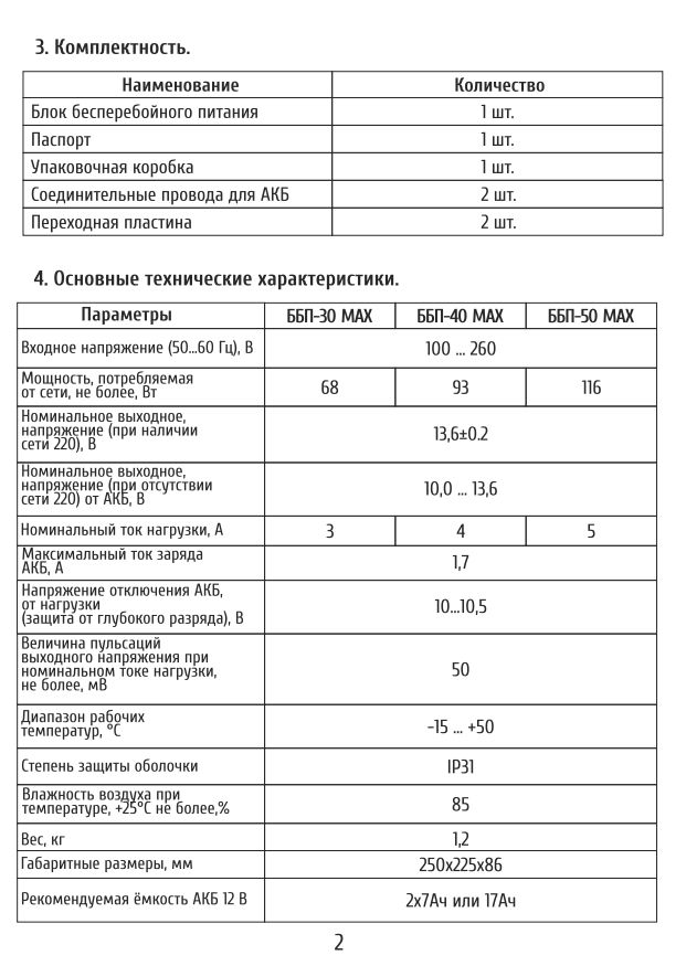 Рекомендуемая ёмкость АКБ: 17/18 А∙ч или 2×7 А∙ч (АКБ в комплект поставки не входят)