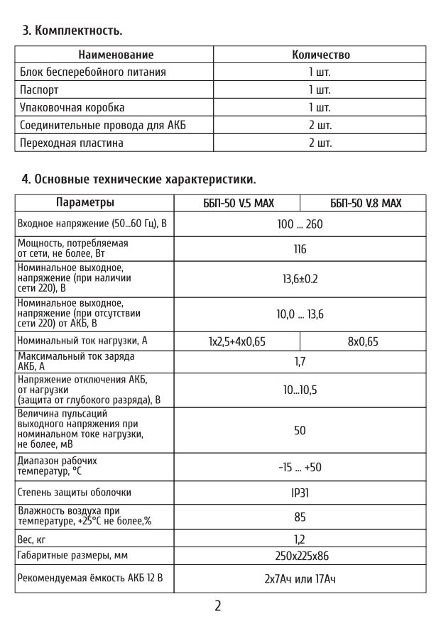 Рекомендуемая ёмкость АКБ: 2×7 или 1×17А∙ч (АКБ в комплект поставки не входят)