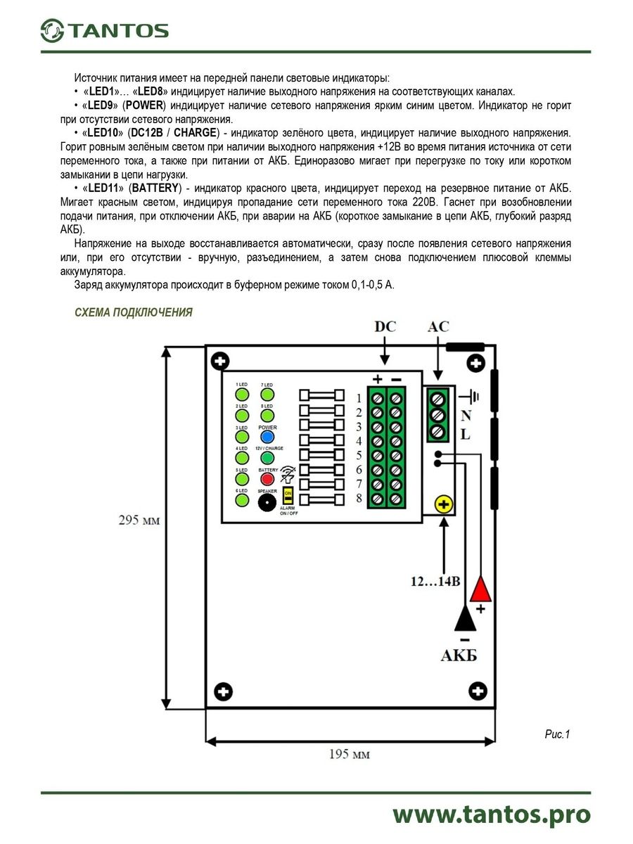 Источник вторичного электропитания резервированный 12В 8А (макс 9.5А) под акб.12В 17(18) А∙ч. 8 распределённых выходов × 1.25 А. Регулировка выходного напряжения 12.5÷14.5В. Защита от перегрузки и короткого замыкания каналов.