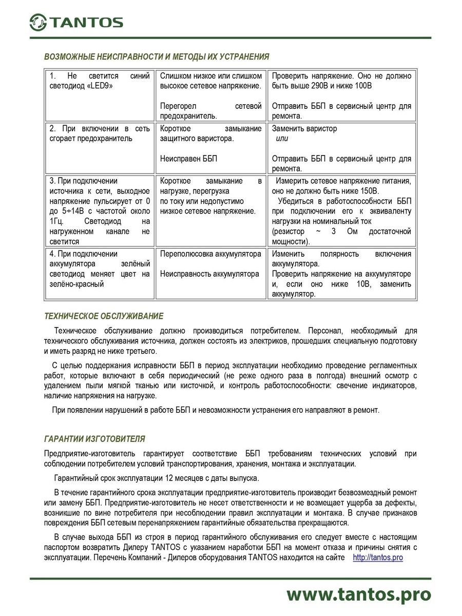 • Время наработки на отказ: не менее 100 000 часов