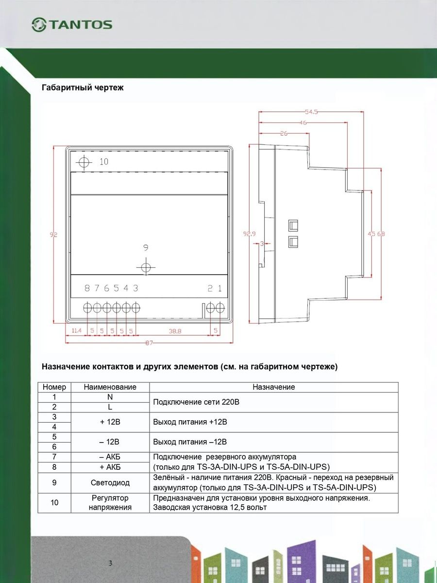 Резервное электропитание: внешний АКБ 12 В 4; 7 или 12 А·ч