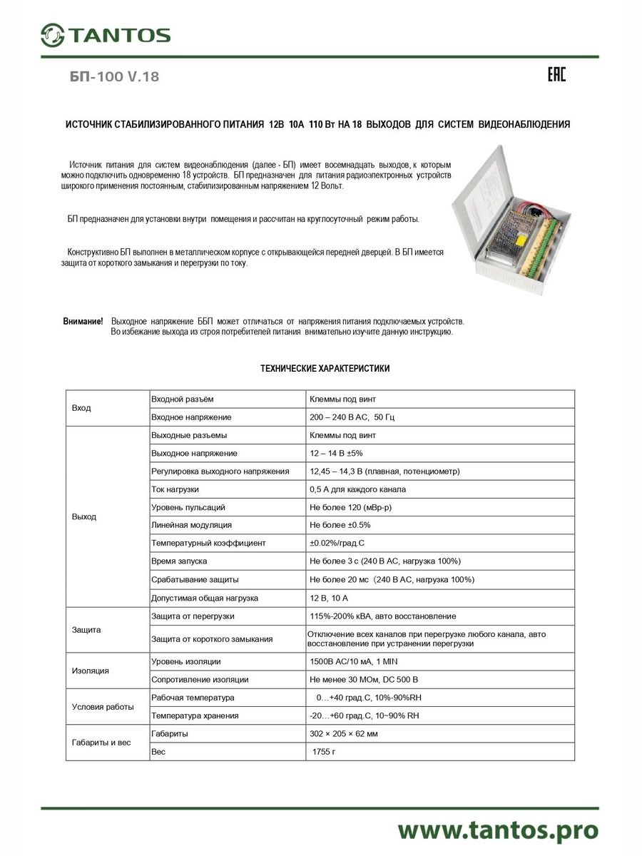 Источник питания для систем видеонаблюдения 12В 10А 110Вт на 18 выходов