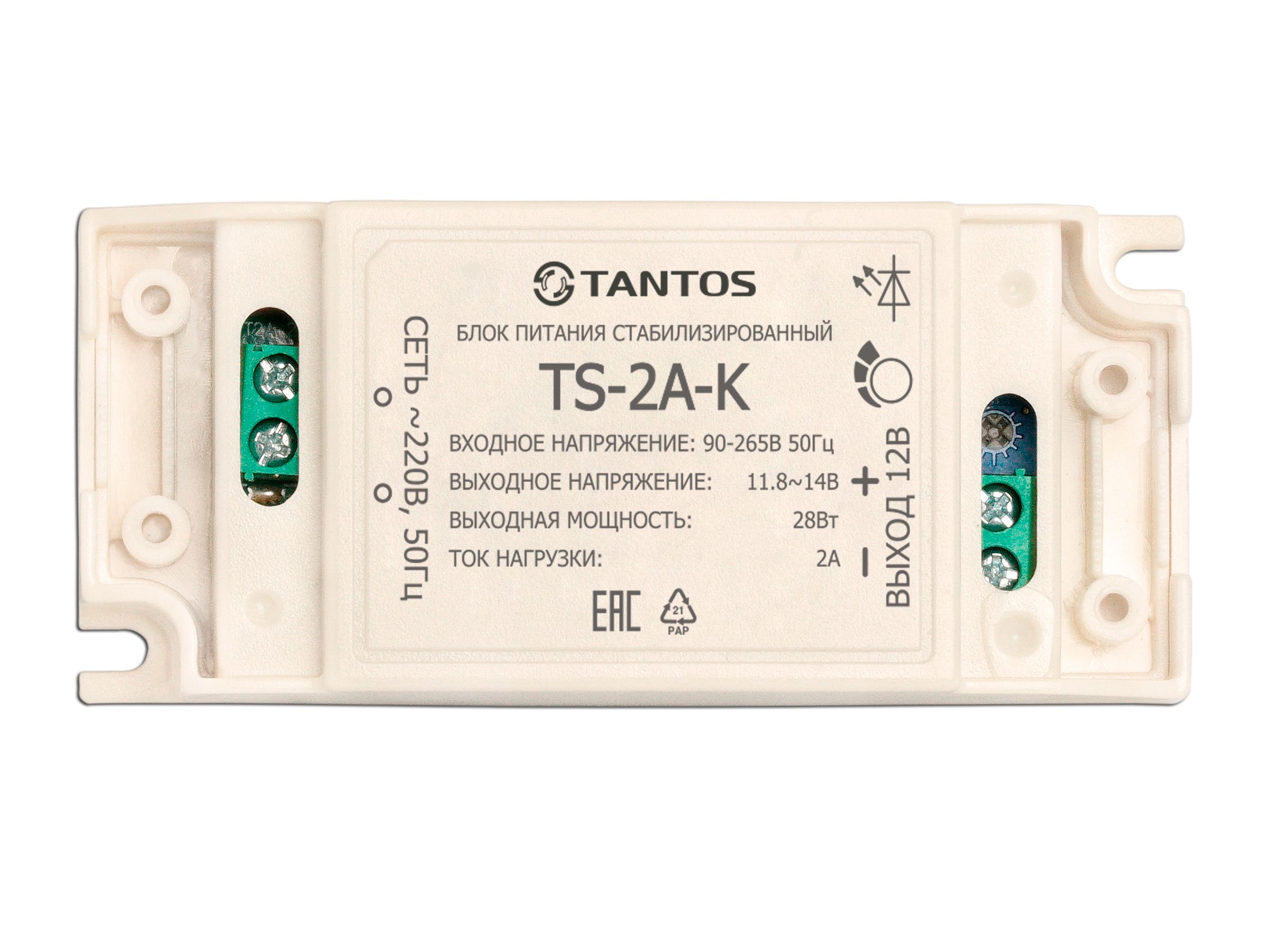 Блок питания стабилизированный 12В; 2А; 90-265В 50Гц, пластиковый корпус