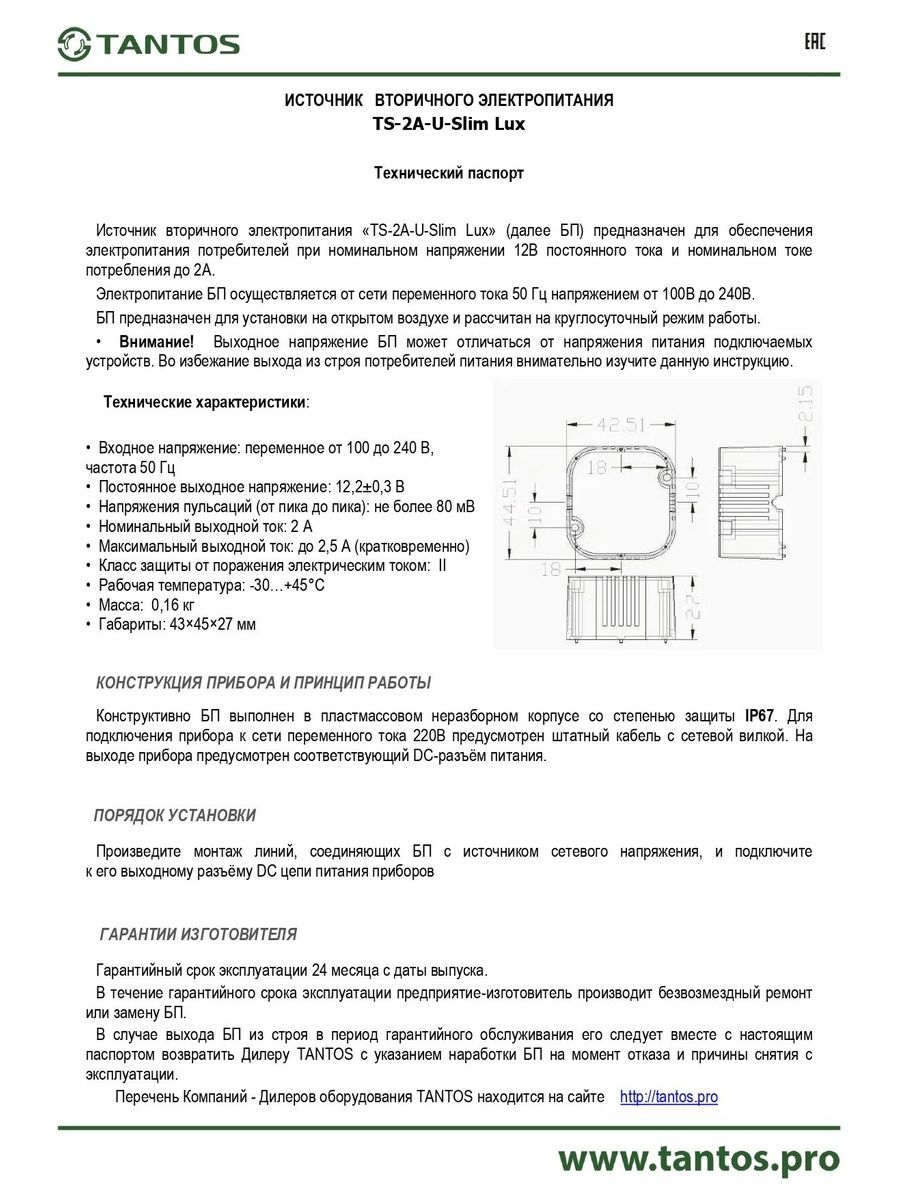 Источник питания TS-2A-U-Slim Lux