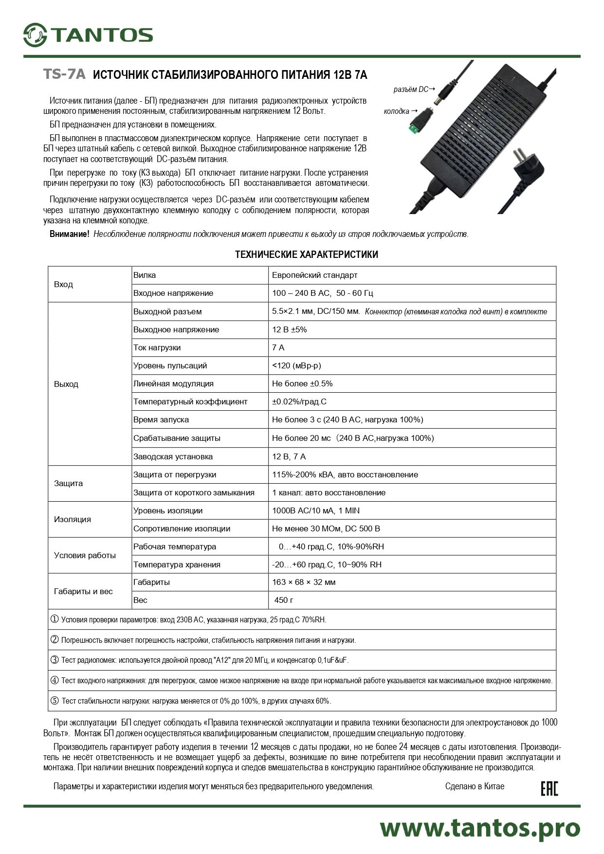 Выходной разъем 5.5×2.1 мм, DC/150 мм. Коннектор (клеммная колодка под винт) в комплекте