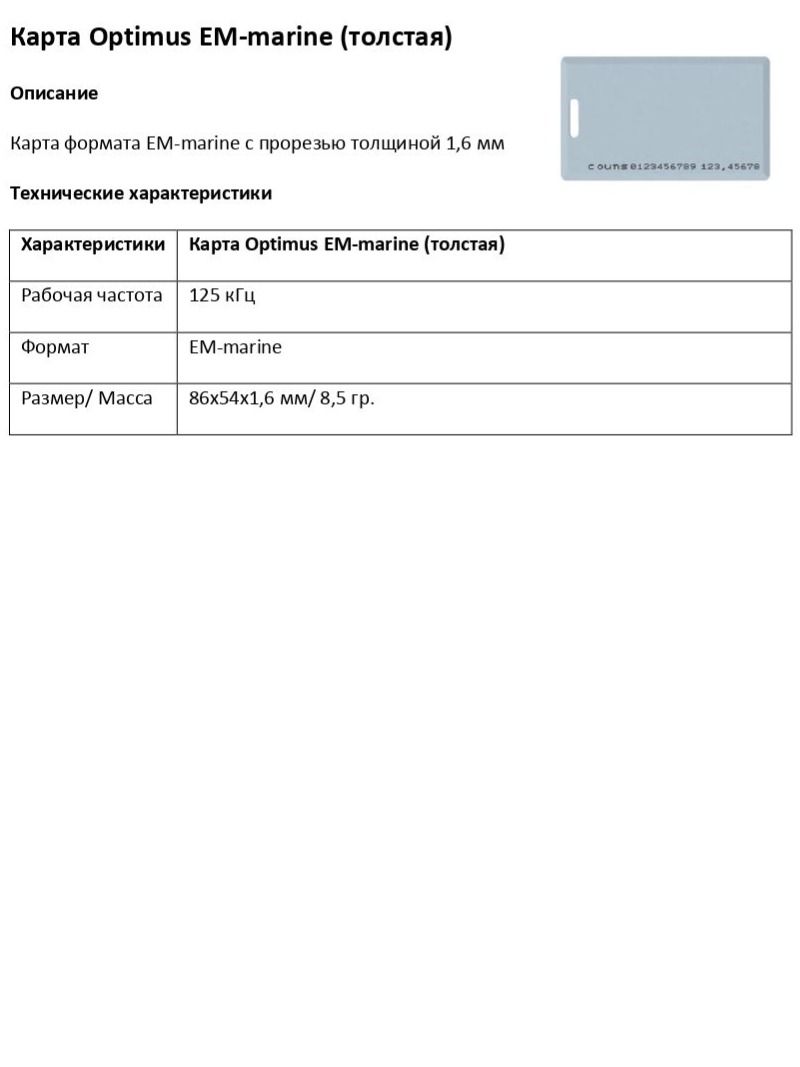 Карта формата EM-marine с прорезью толщиной 1,6 мм