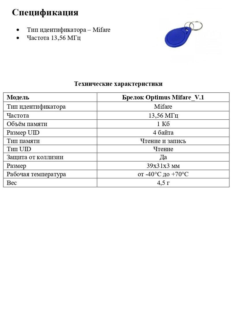 Брелок Optimus Mifare_V.1 (100 штук)