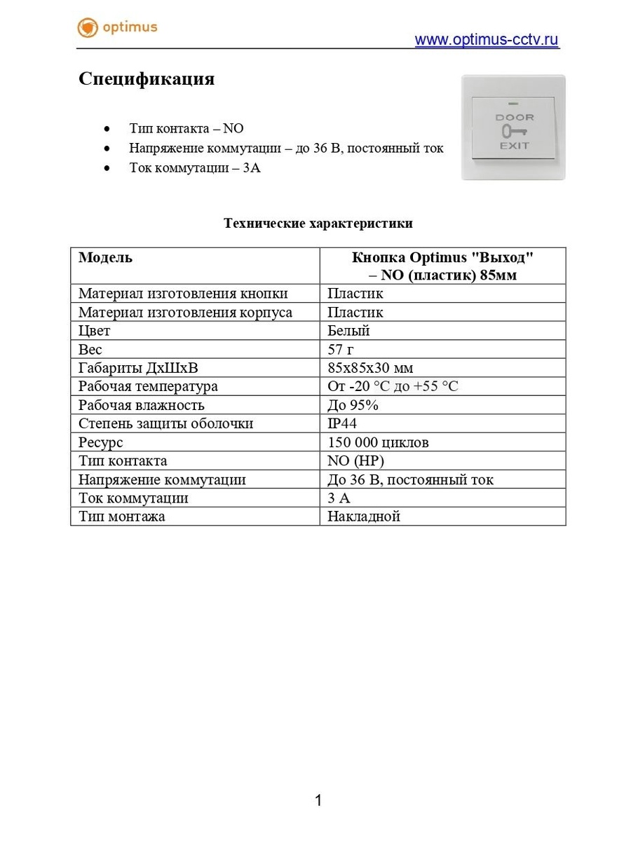 Кнопка Optimus "Выход" (пластик) 85мм