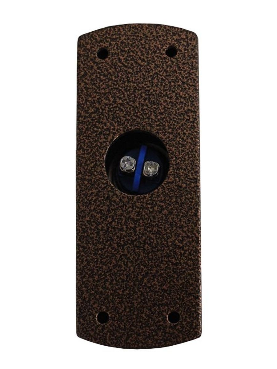 Кнопка выхода (без подсветки). Предназначена для накладного монтажа. Выполнена в корпусе из цинкового сплава, габаритные размеры: 80х30х25 мм, цвет покрытия - медный антик