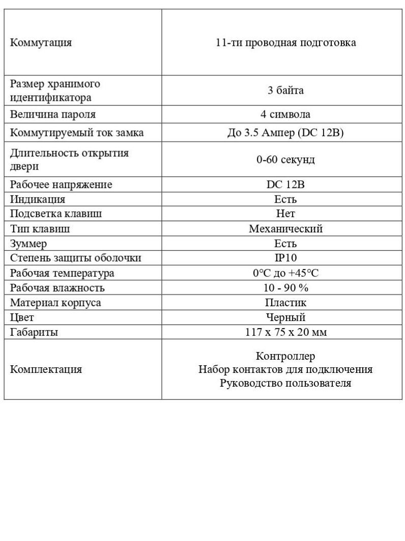 Совместимость Контроллер будет корректно работать с любыми идентификаторами формата EM-Marine, подключение внешнего считывателя не предусмотрено
