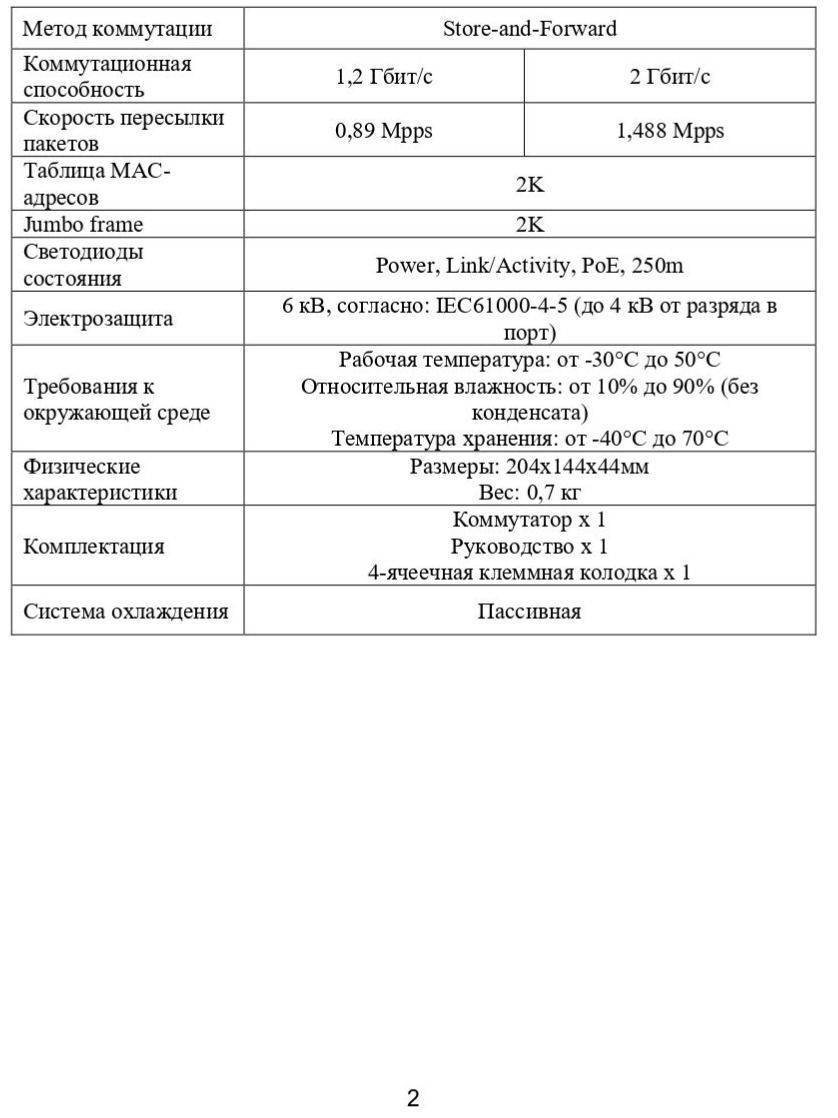 Сетевые порты 4 порта 10/100 Мбит/с RJ-45, PoE+, 2 порта 10/100 Мбит/с RJ-45, Uplink