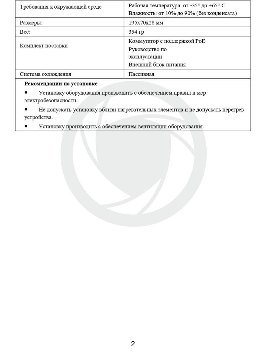 Комплект поставки Коммутатор с поддержкой PoE; Руководство по эксплуатации; Внешний блок питания