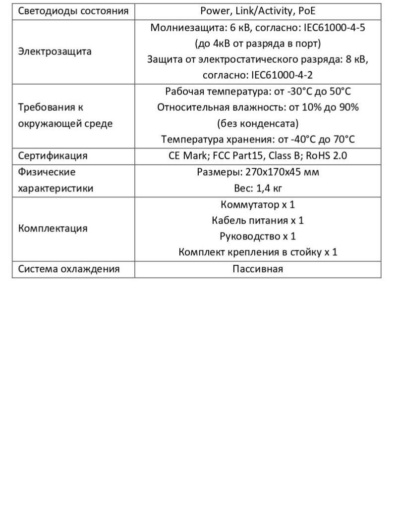 Комплектация Коммутатор х 1, Кабель питания х 1, Руководство х 1, Комплект крепления в стойку х 1