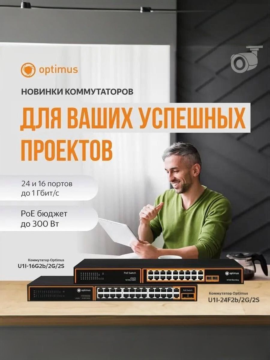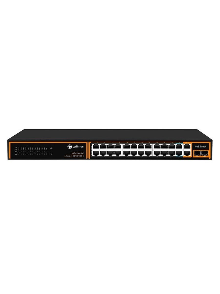 Коммутатор Optimus U1I-24F2b/2G/2S - неуправляемый PoE-коммутатор. Он оснащен 24 портами 10/100 Мбит/с с поддержкой PoE (технология передачи питания по сетевому кабелю вместе с данными) к каждому из которых можно подключать сетевые устройства (IP-камеры, IP-телефоны, беспроводные точки доступа).