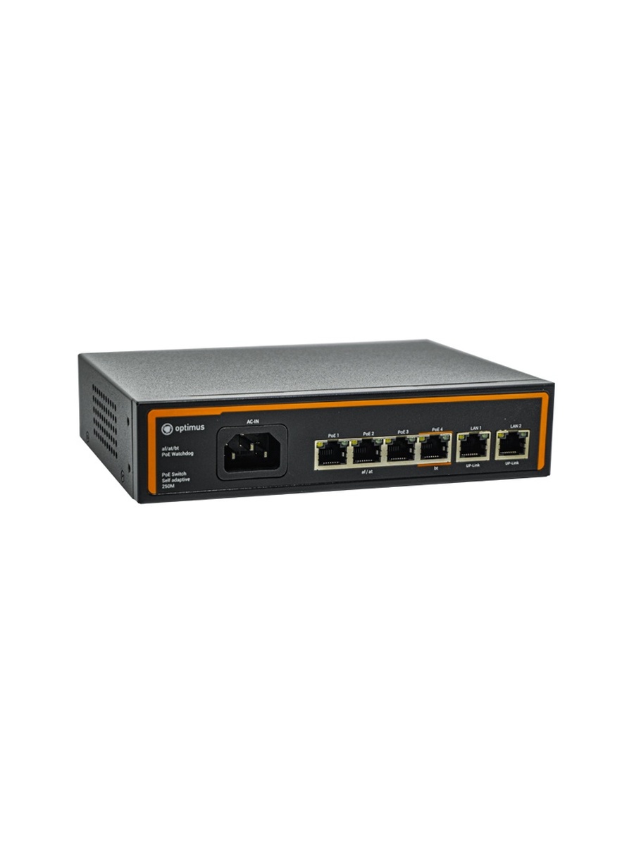Коммутатор Optimus U1I-4F1b/2F - неуправляемый PoE-коммутатор. Коммутатор оснащен портами 10/100 Мбит/с с поддержкой PoE (технология передачи питания по сетевому кабелю вместе с данными) к каждому из которых можно подключать сетевые устройства (IP-камеры, IP-телефоны, беспроводные точки доступа), а также с функцией Watchdog, она позволяет перезагрузить "зависшее" устройство, подключенное к коммутатору, путем снятия и повторной подачи напряжения.