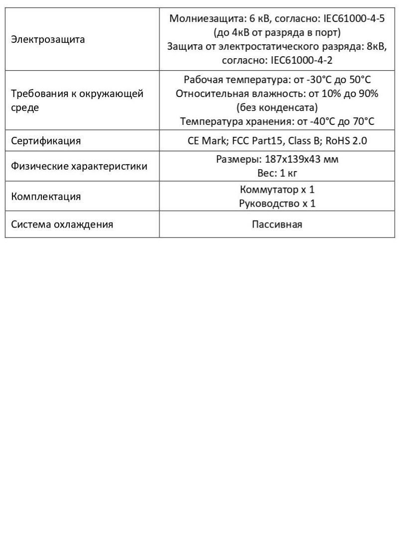 Электрозащита Молниезащита: 6 кВ, согласно: IEC61000-4-5 (до 4кВ от разряда в порт), Защита от электростатического разряда: 8 кВ, согласно: IEC61000-4-2