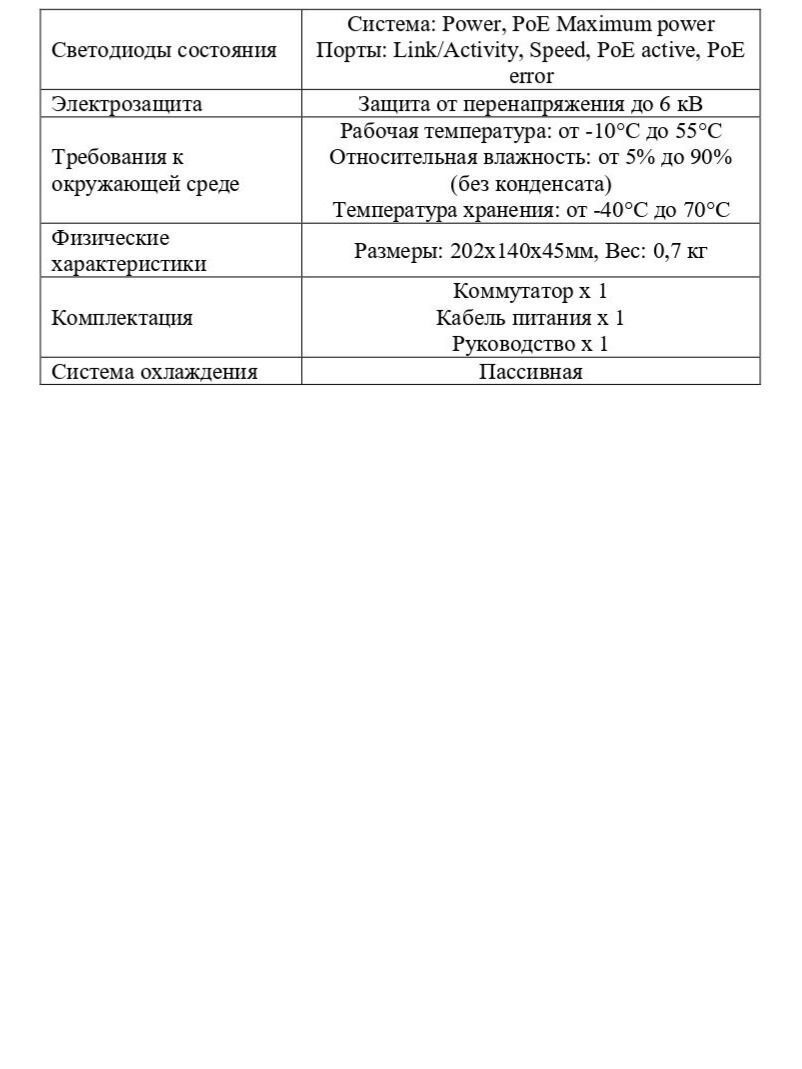 Сетевые порты 8 портов до 100 Мбит/с RJ-45, PoE+ 2 порта до 100 Мбит/с RJ-45, Uplink