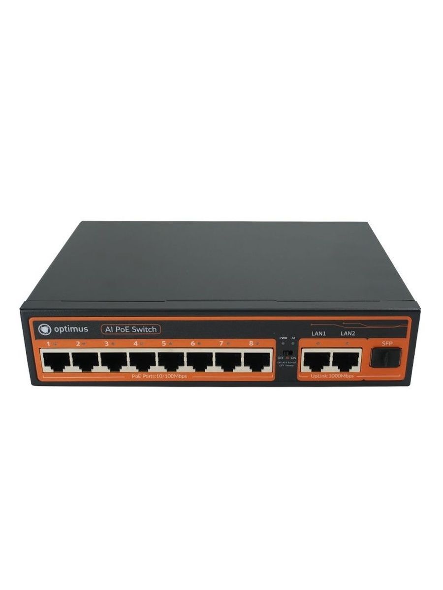 Коммутатор Optimus U1I-8F/2G/1S - неуправляемый PoE-коммутатор. Он оснащен 8 портами 10/100 Мбит/с с поддержкой PoE (технология передачи питания по сетевому кабелю вместе с данными) к каждому из которых можно подключать сетевые устройства (IP-камеры, IP-телефоны, беспроводные точки доступа).
