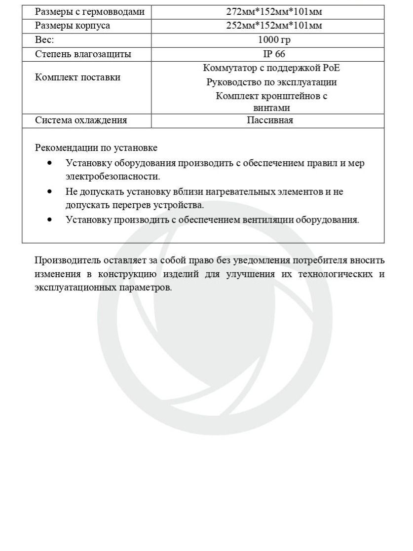 PoE Power Output PoE1~6Порты:1/2(+52V),3/6(GND)≤30Вт PoE7~8Порты:1245(+53V),3678(GND) Комбинированый1/2 (+52В),3/6(GND)≤60Вт