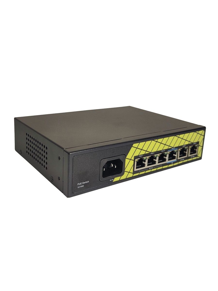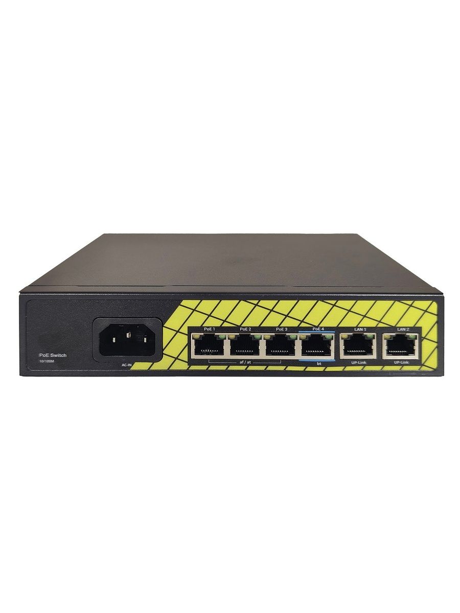 PoE коммутатор 4x100 Мбит/с PoE порта (3 порта 802.3af/at, максимальная мощность PoE 30Вт на порт, 1 порт 802.3af/at/bt, максимальная мощность PoE 60Вт на порт) + 2x100 Мбит/с порта Uplink, общий бюджет PoE 60 Вт, автоматический PoE watchdog, автоматический выбор длины линии и скорости работы (до 130м скорость 100Мбит/с, от 130м до 250м скорость 10Мбит/с), встроенный блок питания, грозозащита и защита от статического электричества, от -30°С до +60°С. Возможность установки в 19” стойку с помощью монтажных комплектов TSn-MK1 и TSn-MK2.