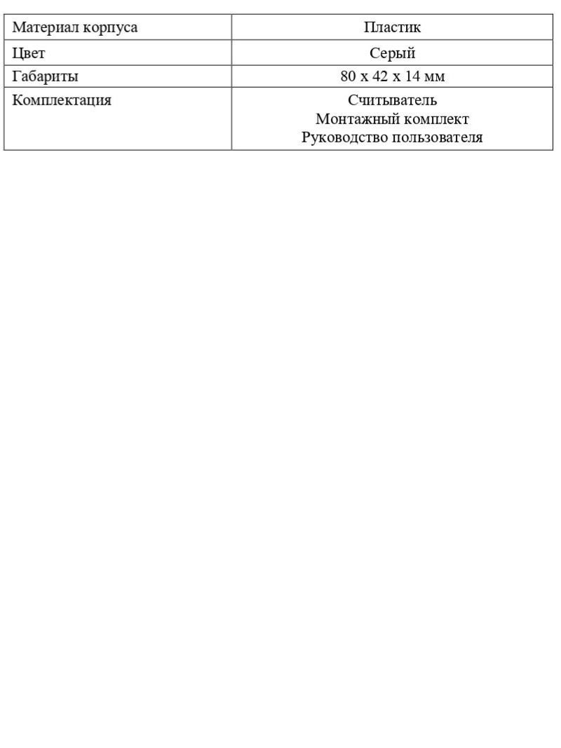 Габариты Контроллер: 48 х 32 х 16 мм; Считыватель: 80x42x14 мм