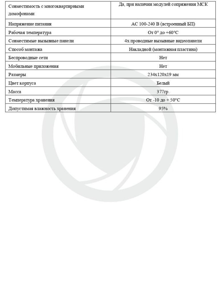 Питание АС 100-240В (встроенный БП) - домофон, DC 12В от монитора - панель