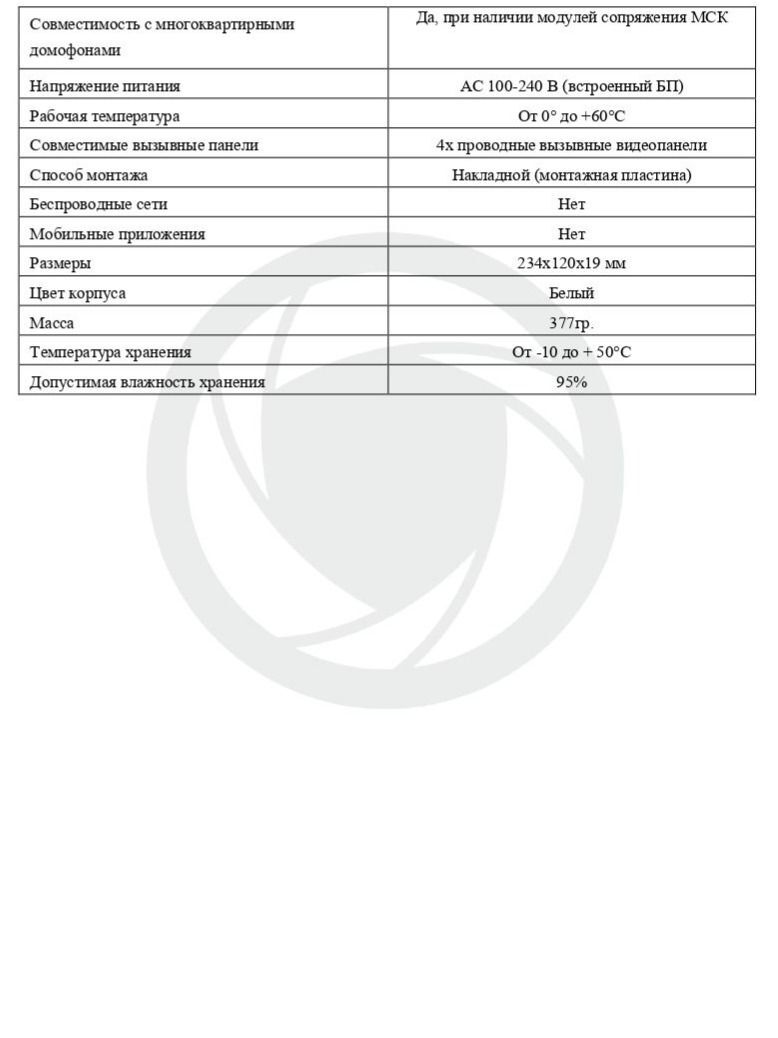 Питание АС 100-240В (встроенный БП) - домофон, DC 12В от монитора - панель