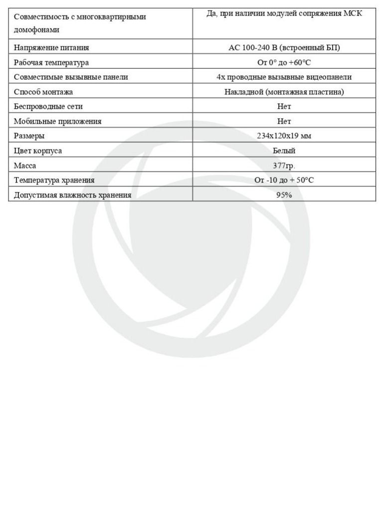 Питание АС 100-240В (встроенный БП) - домофон, DC 12В от монитора - панель
