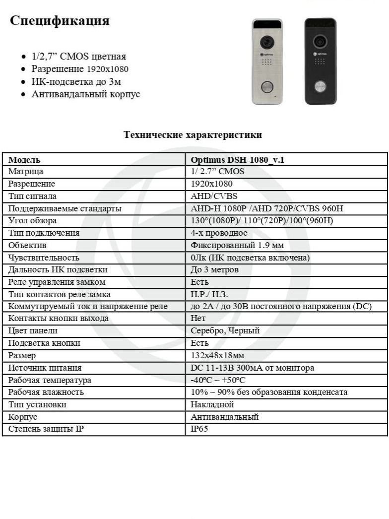 комплект видеодомофона optimus vmh-