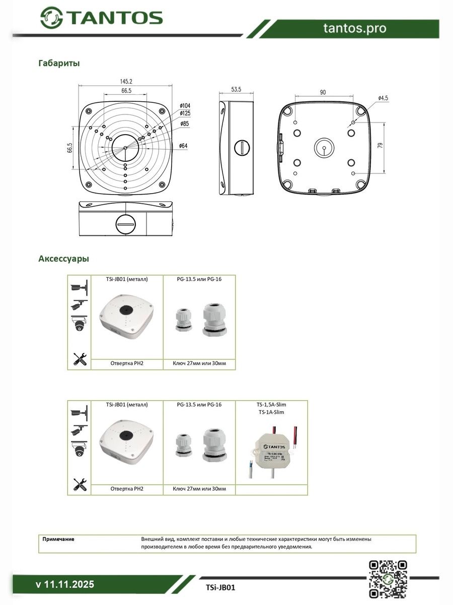 Монтажная коробка для цилиндрических и купольных IP и HD камер предназначена для установки на стене, потолке и т.д. Монтажная коробка предназначена для коммутации кабелей от видеокамеры, а также для установки видеокамер на стену или потолок. Может использоваться совместно с малогабаритным блоком питания, устанавливаемым внутрь коробки, например TS-1A-Slim. Монтажная коробка герметична и предназначена для установки как внутри, так и снаружи помещений. Коробка изготовлена из алюминия. Максимальный диаметр устанавливаемой камеры 140мм.