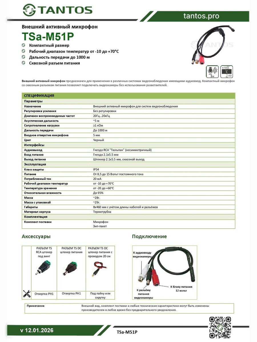 Микрофон для видеонаблюдения TSa-M51P