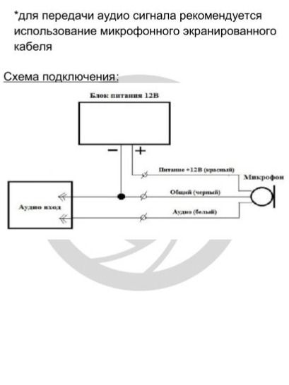 *Для передачи аудио сигнала рекомендуется использование микрофонного экранированного кабеля.